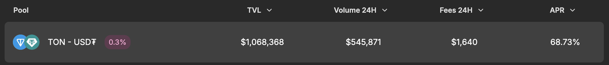 Узкий диапазон означает больше активов для торговли и меньше конкуренции в этом диапазоне, что позволяет собирать больше комиссий и, потенциально, получать более высокую доходность. Именно поэтому **APR выше**, чем в V2 DEX на TON.