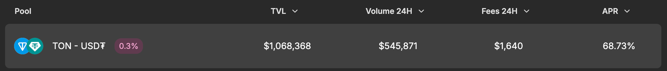 Повышенная доходность Узкий диапазон означает больше активов для торговли и меньше конкуренции в этом диапазоне, что позволяет собирать больше комиссий и, потенциально, получать более высокую доходность. Именно поэтому APR выше, чем в V2 DEX на TON.
