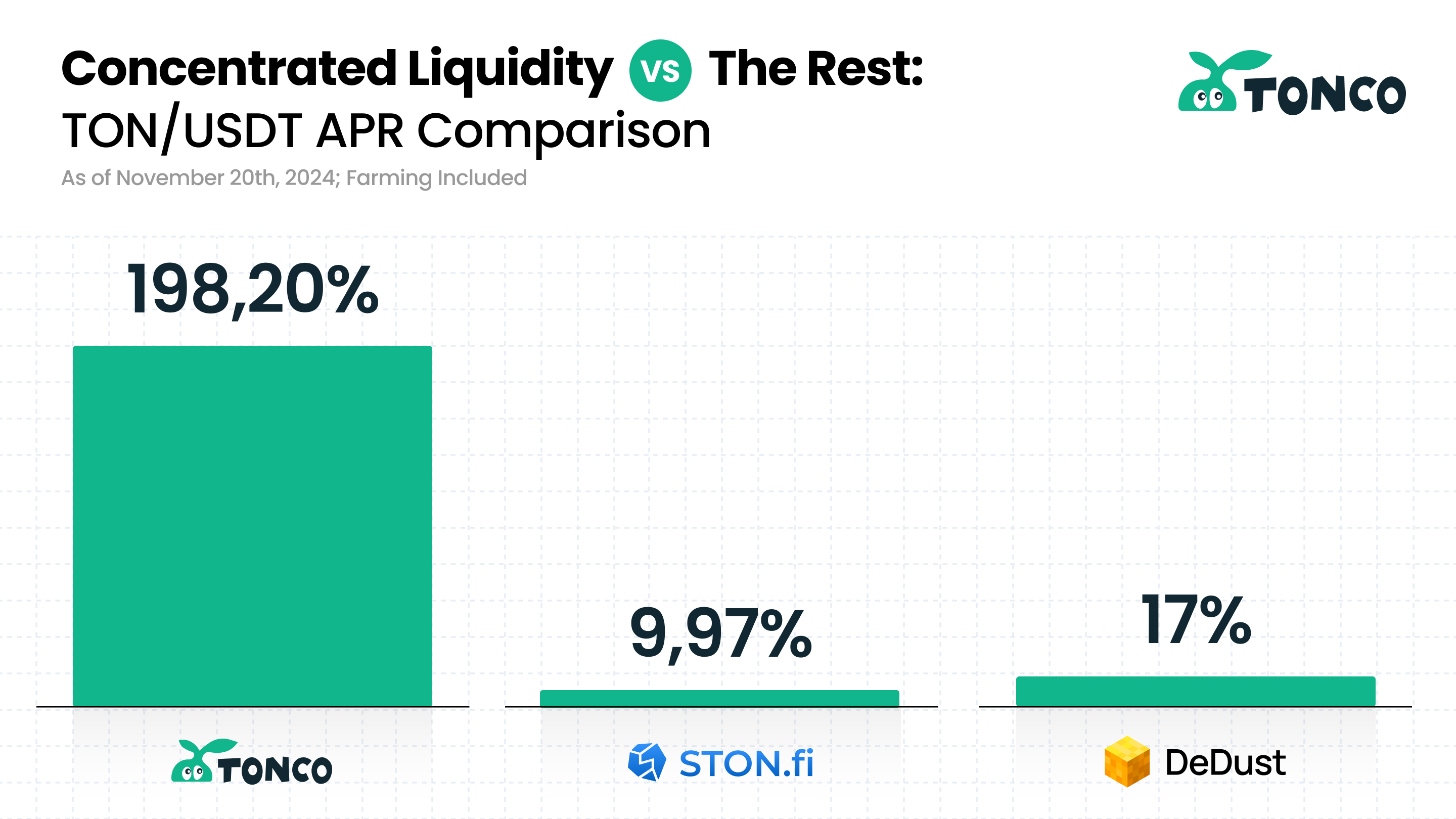 Концентрированная ликвидность **увеличивает эффективность капитала до 20 раз** за счёт размещения ликвидности в конкретных ценовых диапазонах.