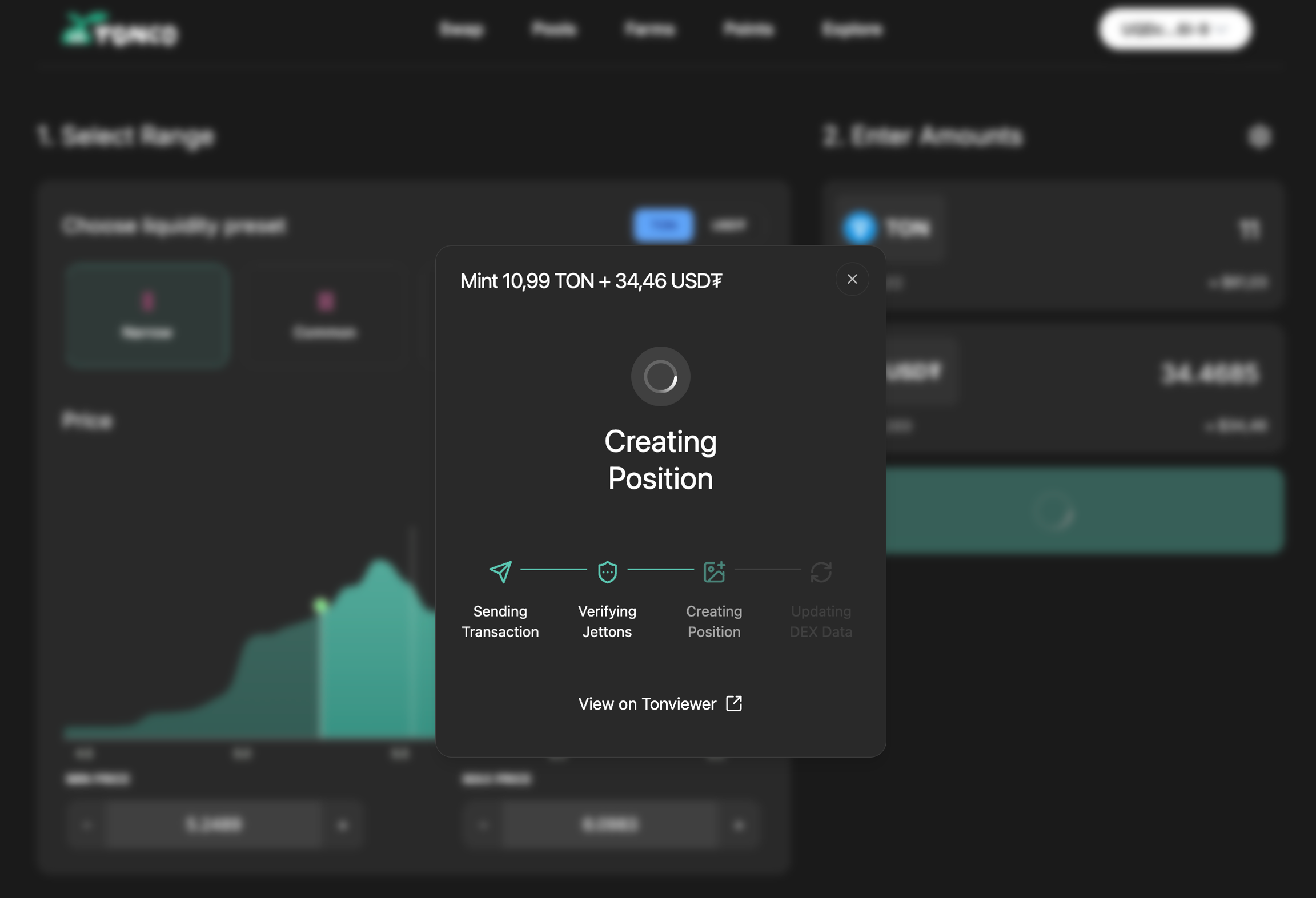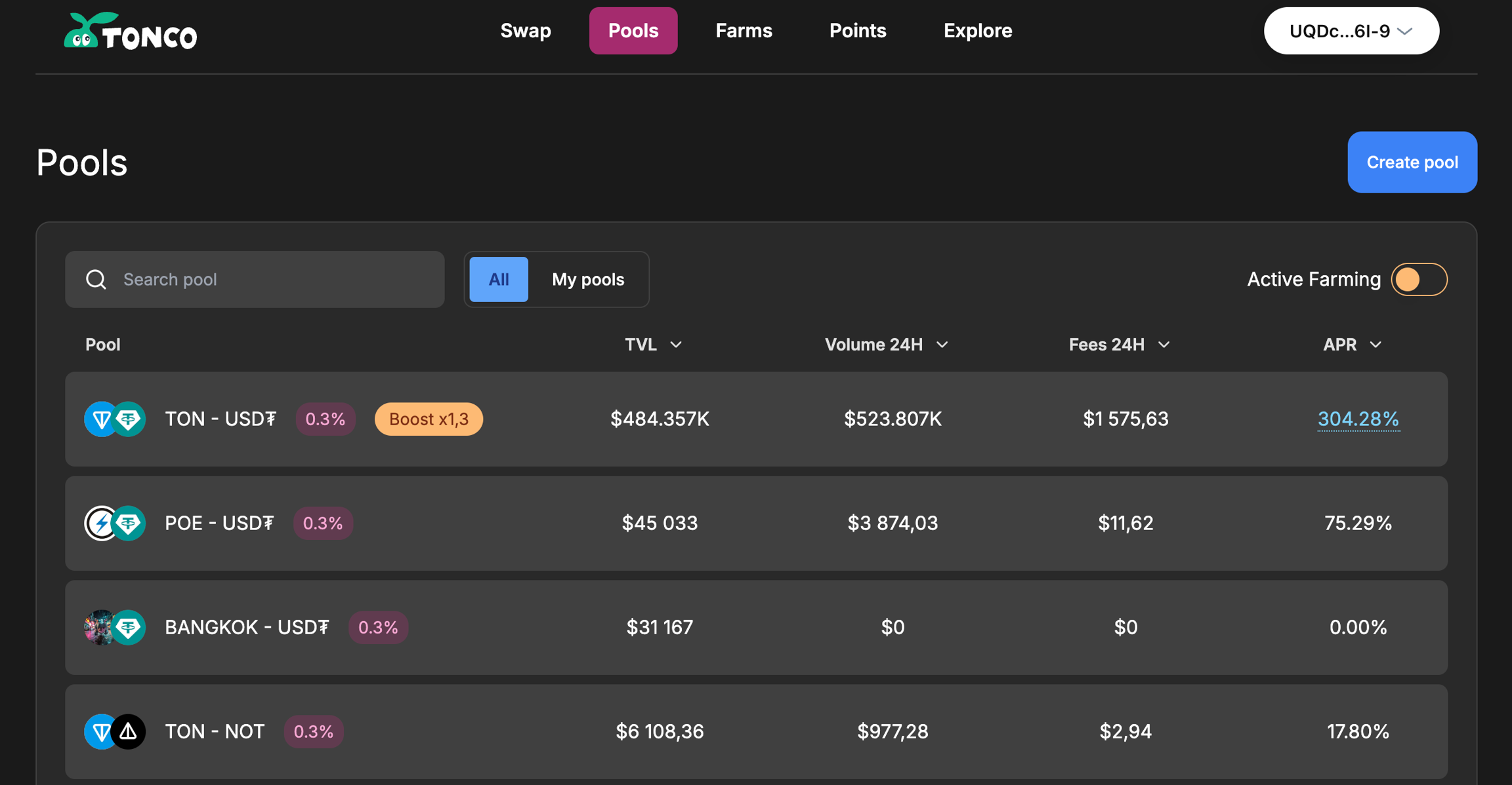 Пулы ликвидности на TONCO позволяют любому пользователю предоставлять ликвидность, добавляя свои активы в пул.