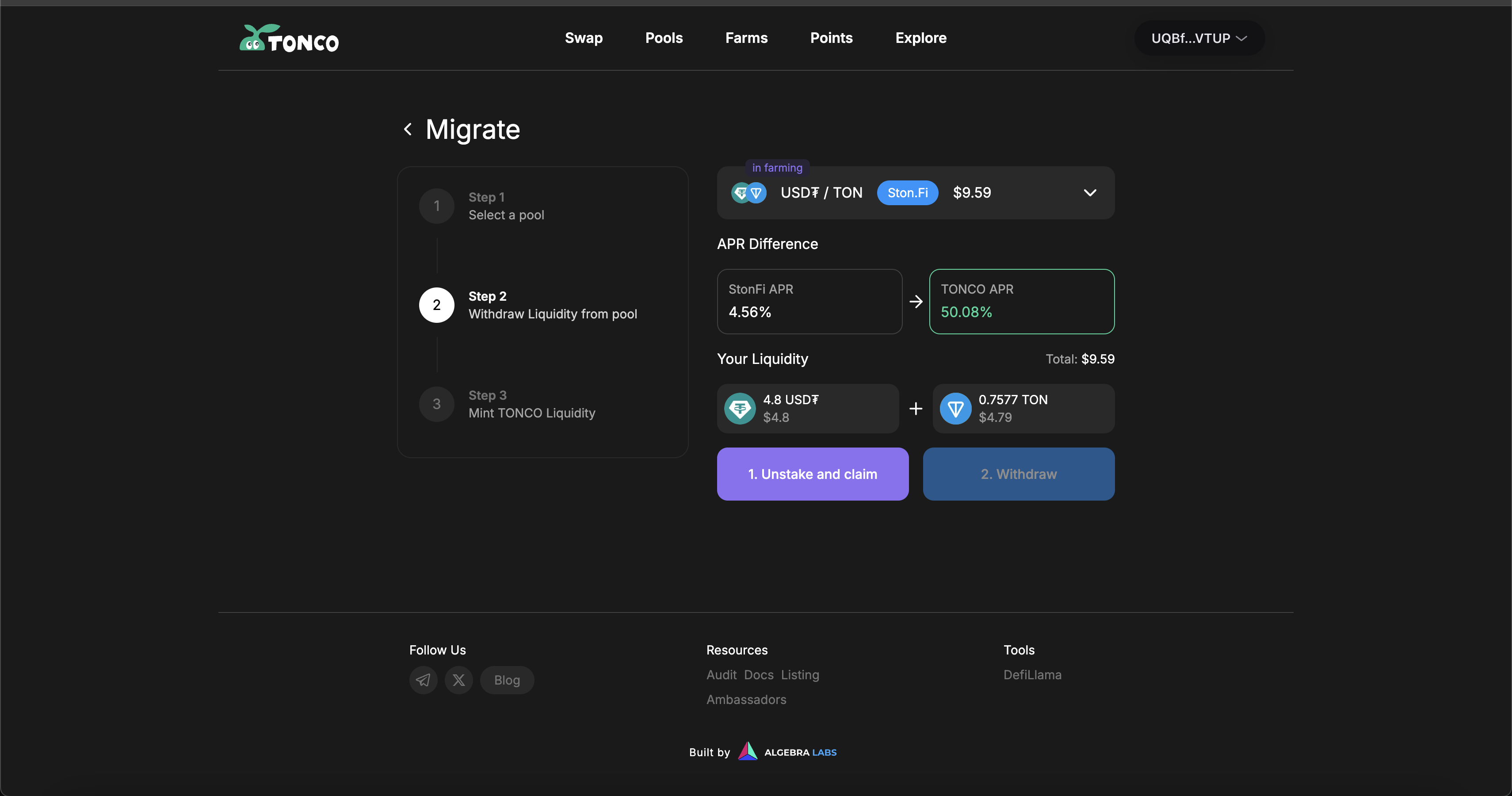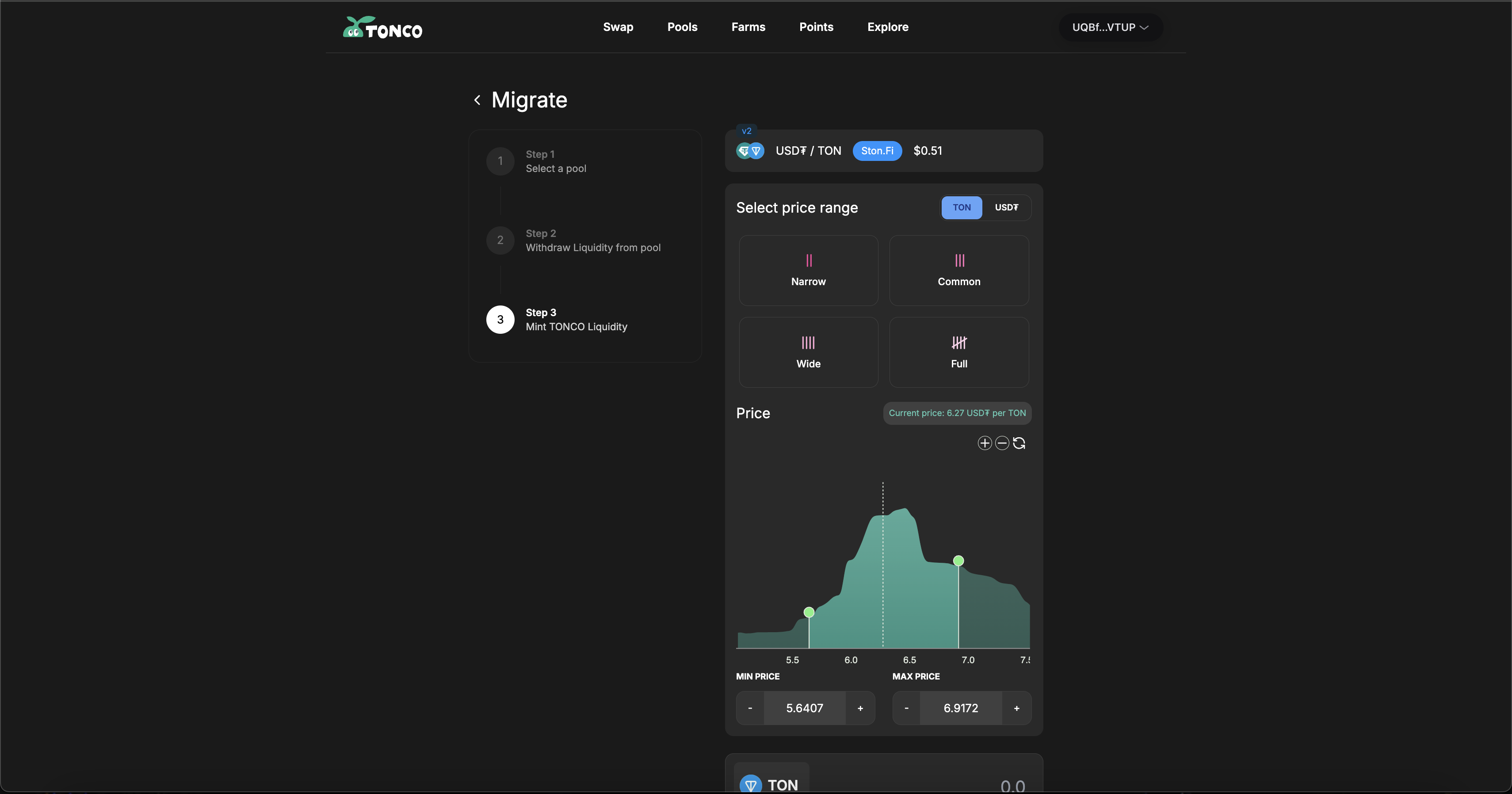 Migrating to TONCO allows liquidity providers to **concentrate liquidity** within a custom price range, potentially **boosting your APR** and **increasing your earnings**