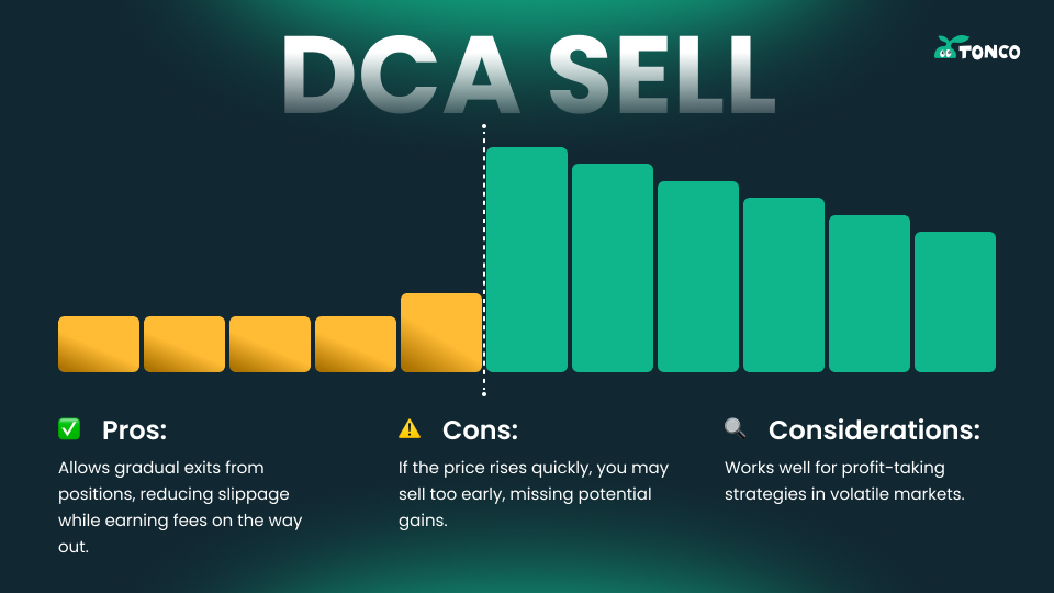 <figure><img src="https://2742307686-files.gitbook.io/~/files/v0/b/gitbook-x-prod.appspot.com/o/spaces%2Fy8K8CxlddU5ghFM3MefK%2Fuploads%2Fgit-blob-7b76284c7453b4ee6858f9fe90d44ce768c6017d%2Fad_b_04.png?alt=media" alt="" width="563"><figcaption><p>DCA Sell preset on TONCO DEX</p></figcaption></figure>