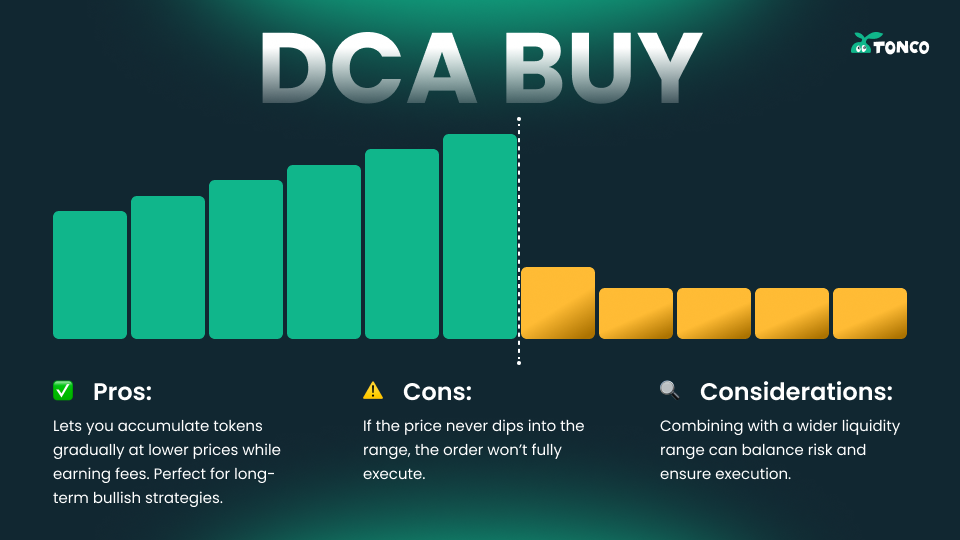 <figure><img src="https://2742307686-files.gitbook.io/~/files/v0/b/gitbook-x-prod.appspot.com/o/spaces%2Fy8K8CxlddU5ghFM3MefK%2Fuploads%2Fgit-blob-aa048daf87a45c7122a336b215ca0e2a3044b193%2Fad_b_03.png?alt=media" alt="" width="563"><figcaption><p>DCA Buy preset on TONCO DEX</p></figcaption></figure>