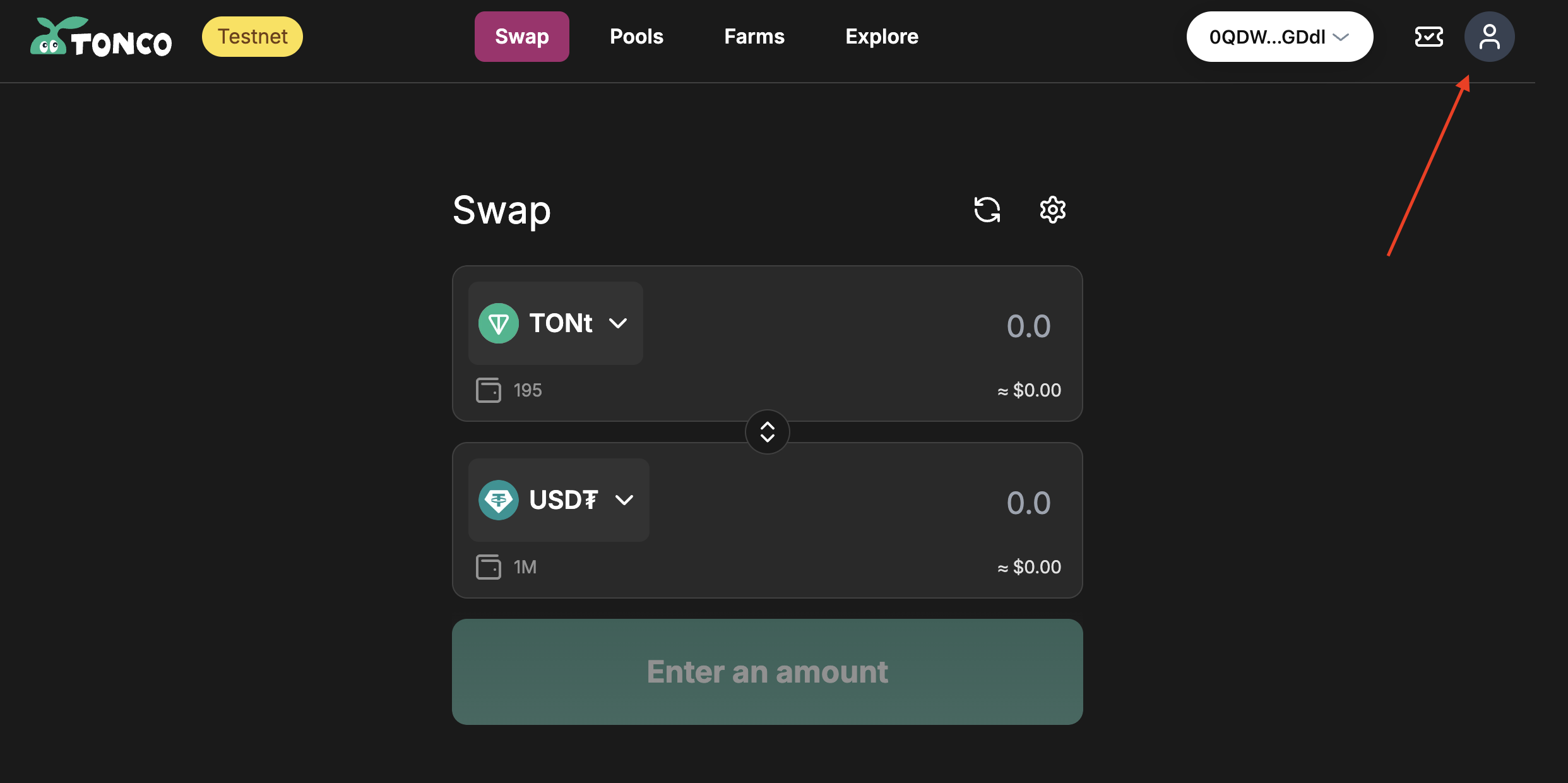 Upon connecting your eligible wallet, a pop-up will prompt you to get testnet tokens. Click “Claim All” to receive 3 test TON and other tokens, giving you full access to DEX functionality.